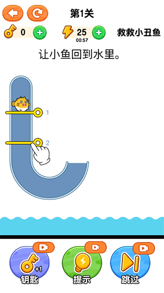 1、随着关卡的逐渐解锁,鱼儿被困得越来越深,只有掌握更多的技巧才能轻松救出鱼儿。