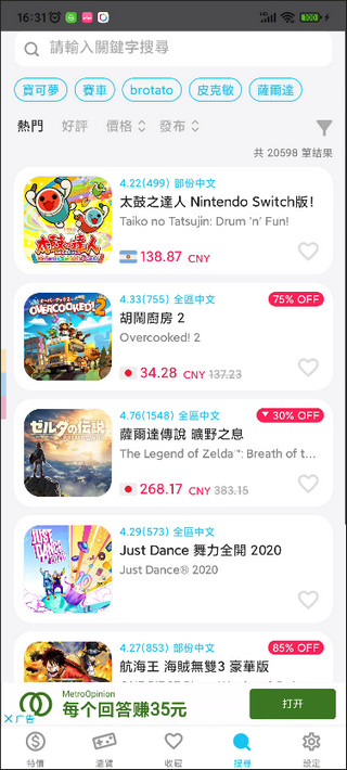 1、其实软件不用挂梯子也能进,部分转圈圈的用户可能系统太低或是其他网络原因导致,首页就是switch特价打折的游戏了