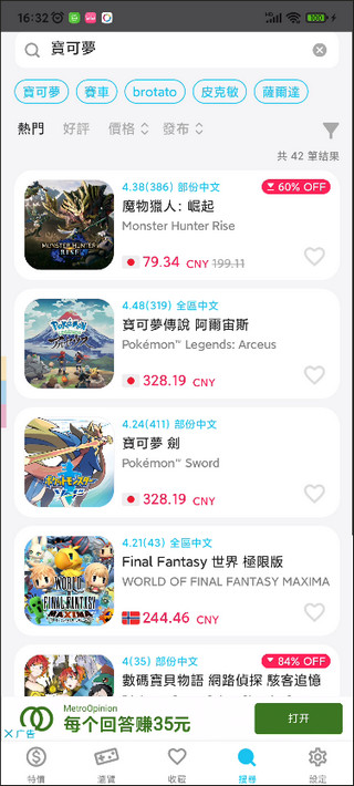 4、比如输入宝可梦,就可以查看宝可梦相关的所有游戏折扣情况