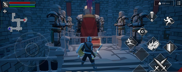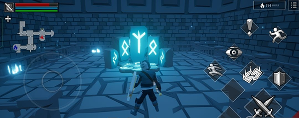 找到探索模式,进入第一关。关卡是不固定的,由以下几种房间随机分布。魂的获取方式就是,击杀小兵,并且在不死的情况下找到祭坛回去。或者用在商人那里买到的归梦水回去。如果死掉了,所获的东西会掉在一个小兵身上,小兵会发着蓝光。击杀掉发着光的小兵,再用祭坛或是药水回去。