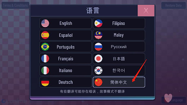 1、下载安装游戏,游戏初始语言为英文,点击右下角进入语言选项可以更改设置;