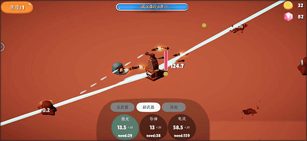 3、将副武器的激光提升到13.5,导弹提升到13,电流提升到58.5;