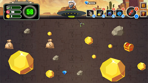 3、金袋,钻石,大金块往往更值钱,不过体积越大,往上拉的时间越久,因此我们在出手之前权衡利弊