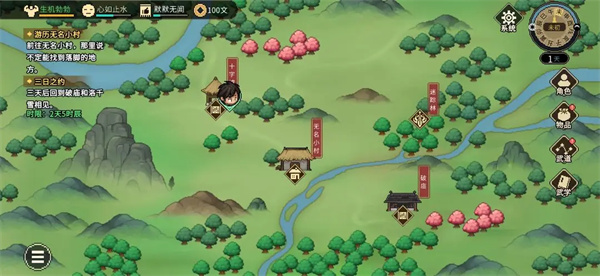 5、充满烟火气息的像素武侠世界。游戏中有着自然流逝的时间,各色NPC都有自己独立的行为AI。
