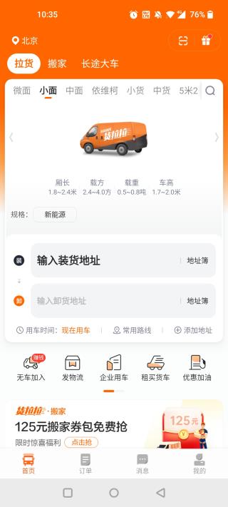 货拉拉叫车app官方版是一款非常便捷的拉货叫车软件,拥有海量的车型任你选择,无论是面包车、小型厢货,小型平板,中货车,大货车车型都应有尽有,只要你填写好运送信息,最快甚至只需要10分钟便能火速上门。而且叫车计费完全都是通过里程、车型计费根据标准来收费,不了解行情的小伙伴们也再也不用担心被坑啦!另外,货拉拉叫车软件app简洁明了的功能页面和时不时开展的福利活动一定能为你带来更加方便的生活,有叫车运货需要的小伙伴一定要下载试试看!