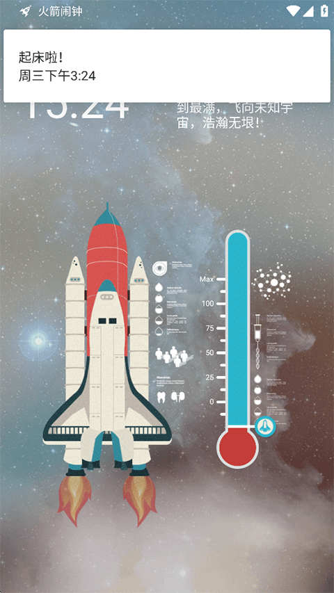 全球最具设计和趣味的火箭闹钟, 融合了手机内置的加速计、重力计,以及麦克风来增加交互的趣味性,残忍又小清新,你需要疯狂摇晃手机,解答极其可怕的数学题,还要完成对着手机吹气等各种任务才能关闭闹铃!