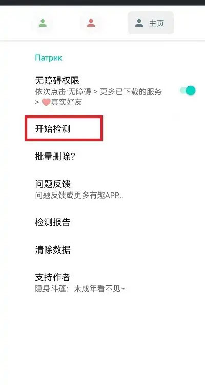 5、打开后返回到李跳跳真实好友软件首页中,然后点击【开始检测】;