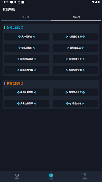 4、除此之外,点击其他功能,里面还有着超多工具,例如各种代码,布局或者有趣的语音包等