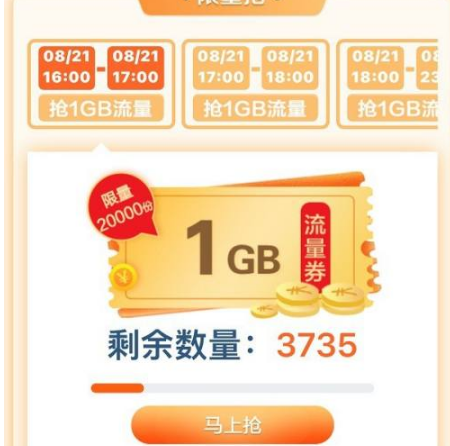 3、周三周六抢流量,大家需要蹲点,错过时间可能得再等下个时间段开始。进入软件首页点击页面中间轮播图中周六抢流量