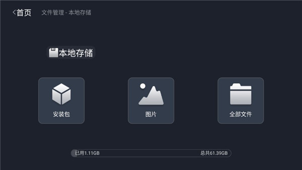 4、在电视应用桌面,找到文件管理-外接存储,进入后点击您下载复制的apk文件进行安装