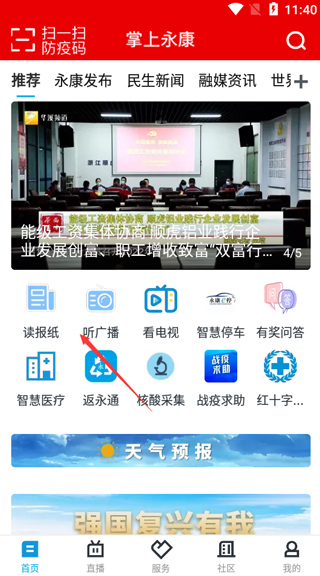 2、进入软件后,在首页,有永康发布、民生新闻、融媒资讯、世界五金等;