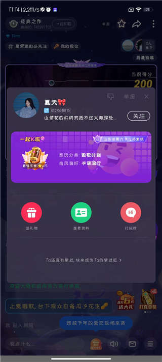 1、在欢游上打开游戏房间,然后点击对方的“头像”;