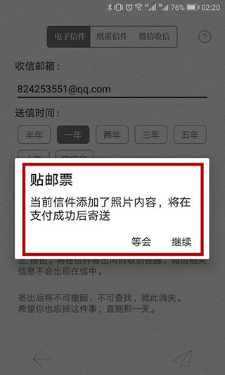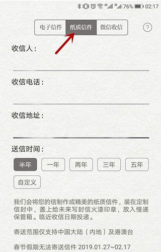 7、还可以弄成纸质信件,到时你收到自己的信将是纸质的,而且非常有个性,但是这个只有土豪才能操作,因为要付费的哦