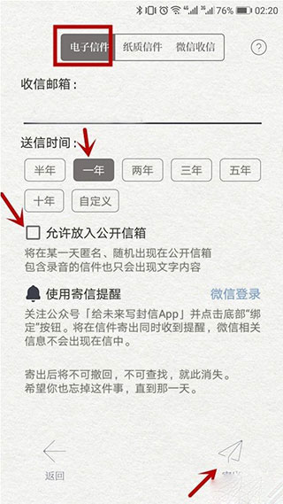 9、然后还是不发图片,不发纸质信件,就发电子信件,还可以不要公开,把勾去掉就是。设置完后,点击右下角的寄出即可。