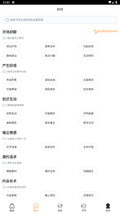 1、根据恋爱阶段而寻找合适的话术,这里丰富的话术可以直接使用;