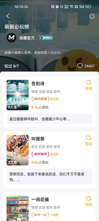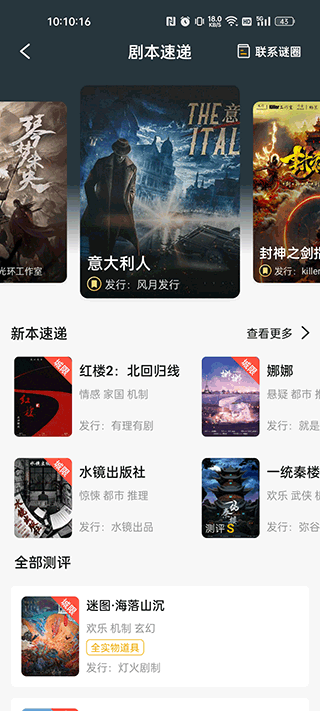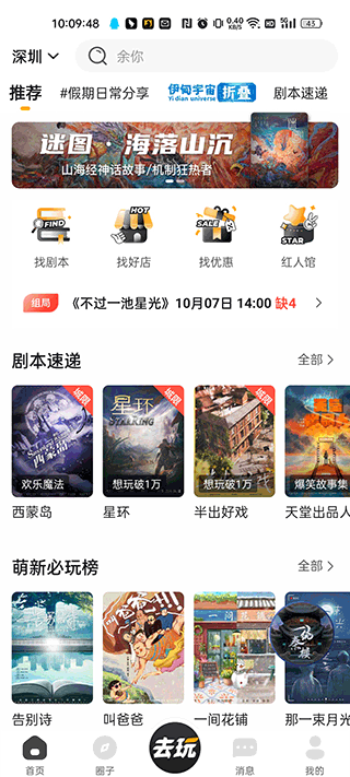 谜圈是一款具有超高人气的剧本杀组队交流社交平台,喜欢剧本杀以及密室逃脱爱好者千万不能错过,在这里你可以找到和你趣味相投的剧本杀伙伴,一起交流分享好剧本和喜欢的密室主题,还可以互相安利当地优质剧本杀线下店以及密室主题店。你还可以在上面优选店铺,以较低的价格玩到高质量的本子,还有公共平台可以给玩过的本子进行评分,一起趣味互动,都是货真价实的真人点评哦。不仅如此,还可以线下组队一起玩,享受同行优惠,每天都有超值优惠,可以以超低价格拿下热门本子。
