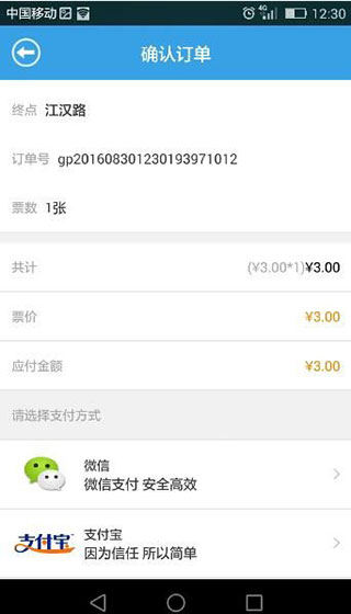 2、接下来您可以看到自己订票的信息,确认好信息后就可以选择支付方式了,最后就可以一键购买了。