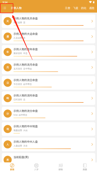 4、回到首页即可查看紫薇排盘,可查看三合、飞星、四化、通胜