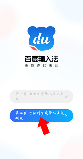 3、再次点击百度输入法(定制)版,进入下方界面后,点击步骤二后方的去切换默认输入法