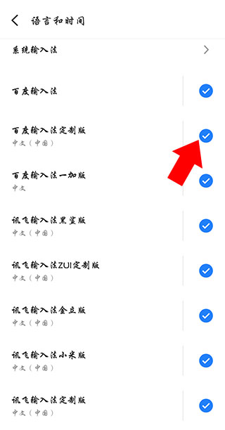 2、之后找到启用输入法界面,勾选百度输入法(定制)版