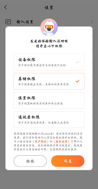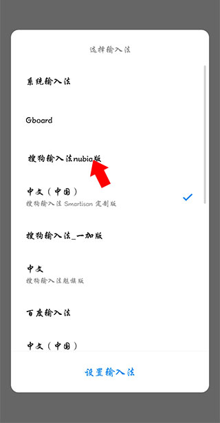 4、在输入法选择界面选择搜狗输入法努比亚版(nubia版)