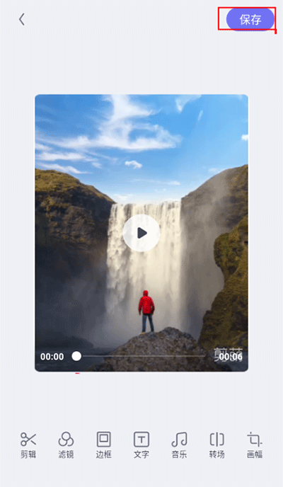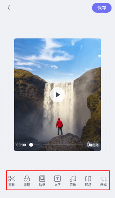 2、通过下方菜单栏的剪辑、滤镜、边框、文字、音乐等功能,来编辑美化视频
