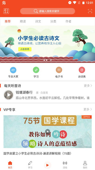 4、提供了大量的古诗文专业诵读音频,学生们可以跟读背诵