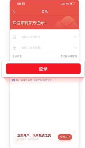 ●在登录页面输入【资金账号】及【交易密码】点击【登录】