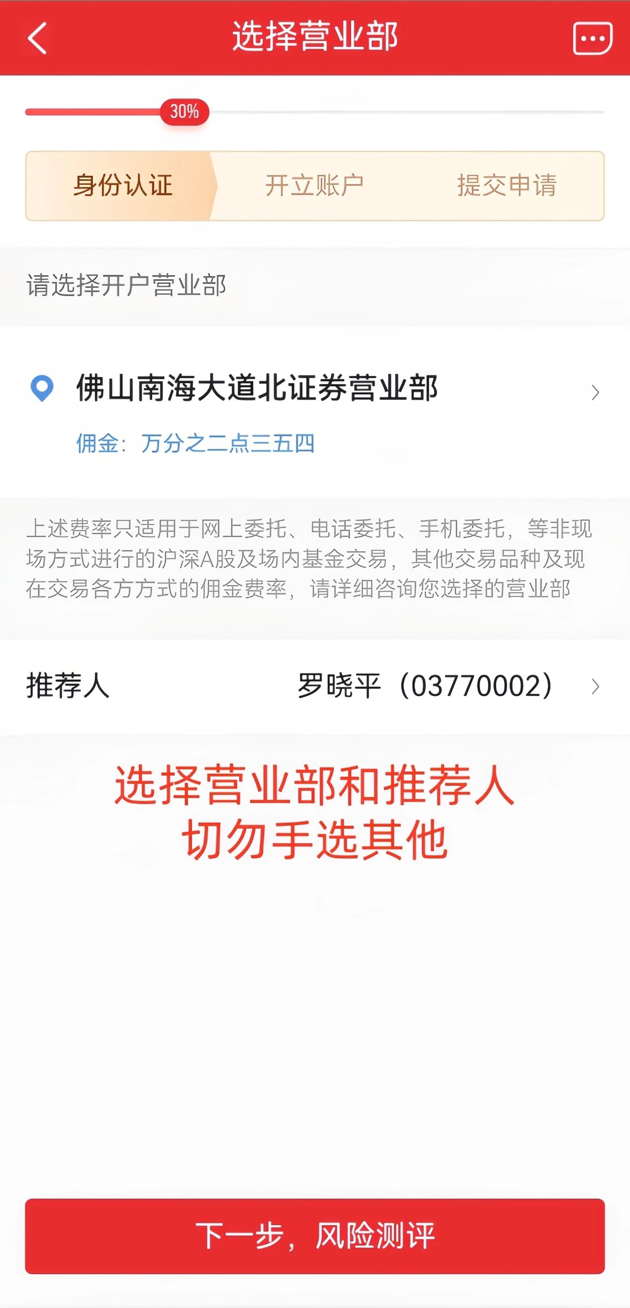 4.选择营业部和推荐人,跟佣金和服务有关系(下图仅为示意,不作任何用图)