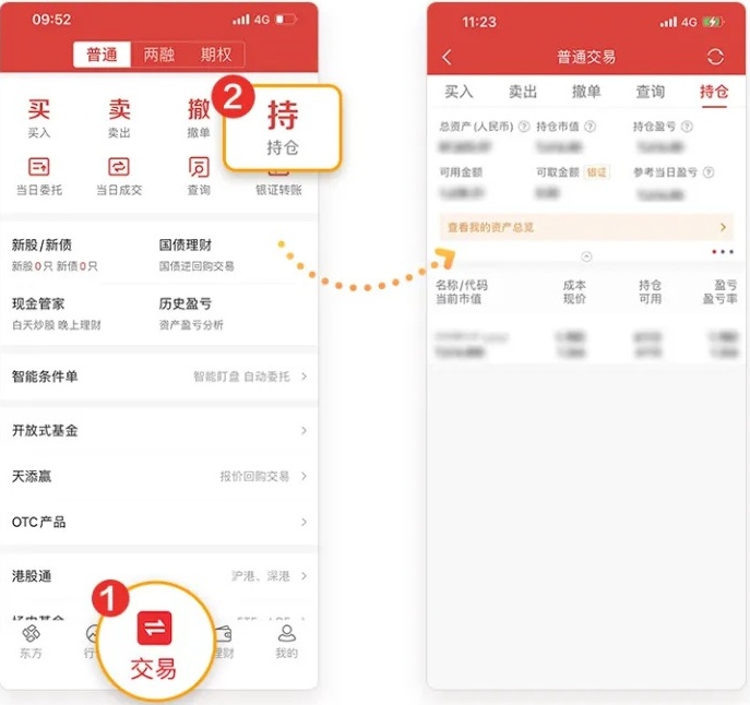 前往【交易】频道 - 点击【持仓】按钮即可查看持仓及收益