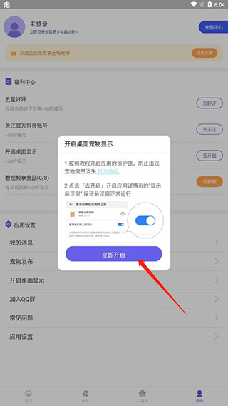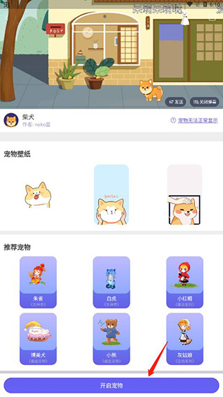 3、点击喜欢的宠物,点击开启宠物就可以设置哦;