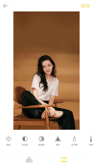 3、进入编辑界面,我们可以进行亮度、对比度、饱和度、锐化、白平衡等编辑调整,