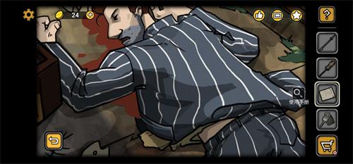 12、进入新区域后,点击白布发现使用手册。通过白色大门,发现尸体,点击金币(更新记录),获得厨房钥匙。掀开衣角发现绘本残页。(绘本残页全部放入绘本中解锁成就“恐怖故事”)