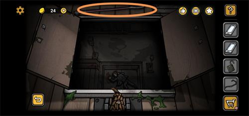 我们回到最初待着的房间,点击大门,用钳子剪断连着的地方,新区域get√