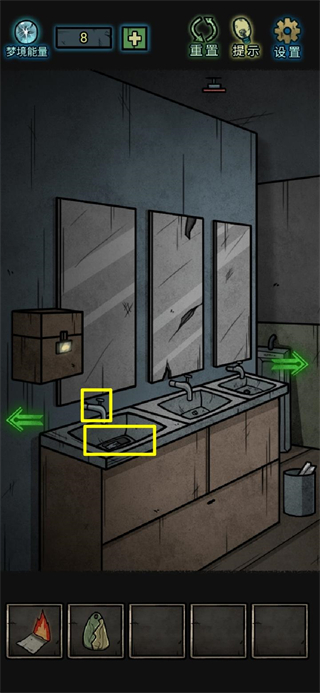 12、去洗手间的洗手池那边,在镜子的左边有一个小盒子就可以打开了,就会获得水龙头和一个神秘碎片。