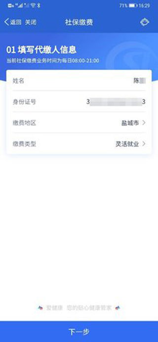 ②选择“缴费城市”和“缴费类型”,填写缴费时间。