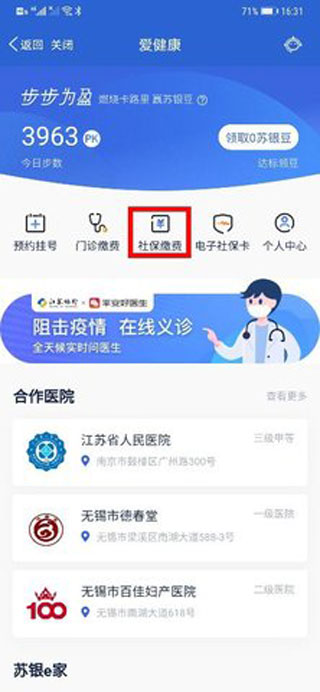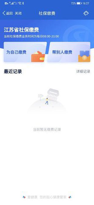 登录天天理财app,点击“生活——爱健康——社保缴费。
