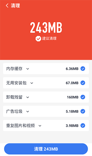全民清理王有助于分析所有日志临时文件和无用安装包文件,清理那些无用的残留垃圾文件,以释放更多的手机存储空间。