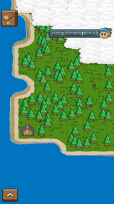 3、如图,可看到右上角提示我们需要五个树桩,点击场景中的树,就可以获得树桩了,