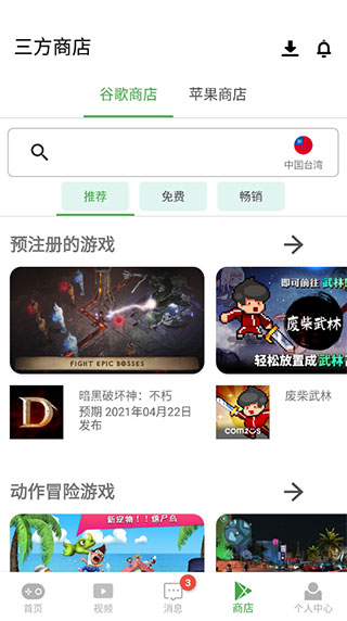 4、地区切换,使用谷歌商店功能的时候可以自由地切换国家或地区,用户可以自由下载不同地区的应用游戏。