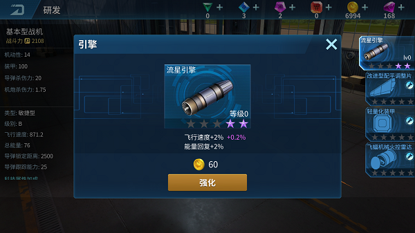 飞机属性提升可在研发界面升级飞机装备与科技。