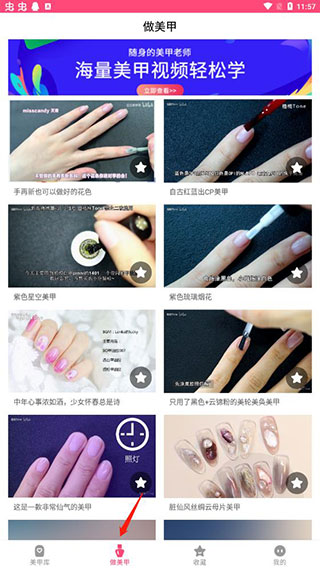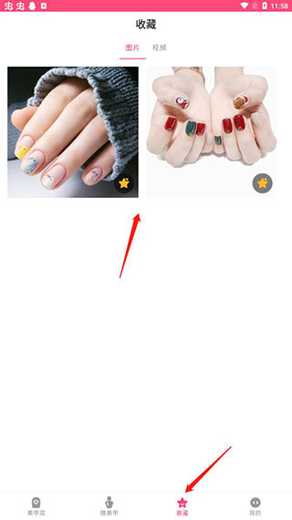 4、在收藏中就可以查看收藏的美甲图片以及视频教学;