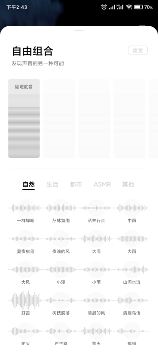 我个人觉得,这款应用非常适合在忙碌的生活节奏中使用。尤其是在需要专注工作或放松心情的时候,戴上耳机试试这个应用,真的能让人感到平静不少。它不仅有丰富的环境音选择,比如林间漫步、夜间露营、夏日海边等场景,还能通过自由组合音效来自定义专属的声音空间。