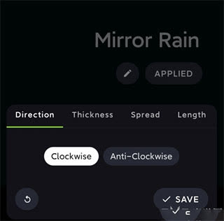 3、默认是Mirror Rain效果,这个是免费的,点击编辑功能后选择Direction可以对跑马灯方向进行设置。Clockwise是顺时针,Anti-Clockwise是逆时针。