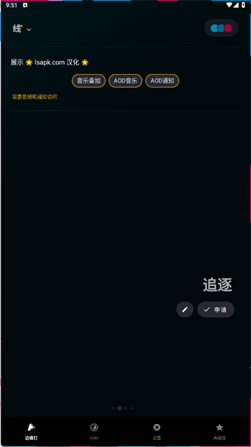 这个应用叫做muvizedge中文汉化版,看起来挺有意思的!它的功能就是在手机屏幕上边缘显示炫酷的跑马灯,跟着音乐节奏动起来,感觉特别有氛围感。用它听音乐的时候,不仅耳朵享受,眼睛也能看到漂亮的灯光效果,真的挺适合喜欢沉浸式体验的人。