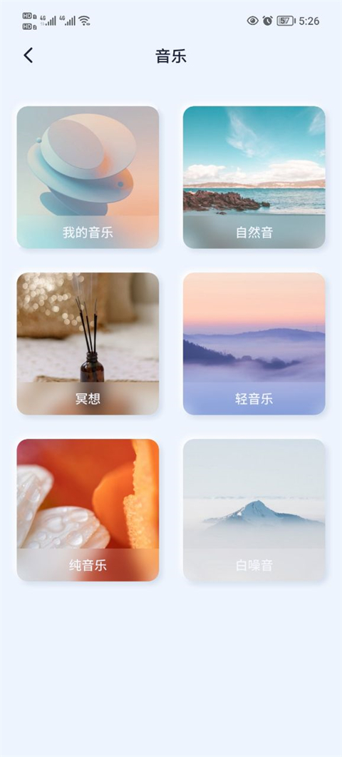 1、下载安装好app后,打开就能看到各种催眠音乐的选项了