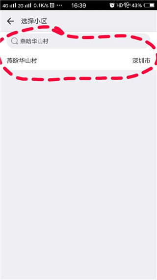 7、搜索你所在的城市和小区名字;