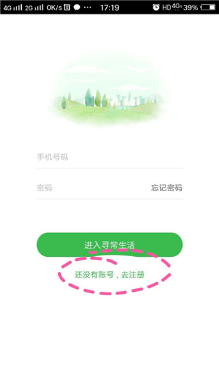 3、填写手机号和密码-点击下方进去寻常生活;