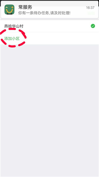 6、然后再点击添加小区,如图;