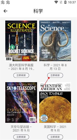 3、在分类中选择想看的杂志,点击“立即阅读”,
